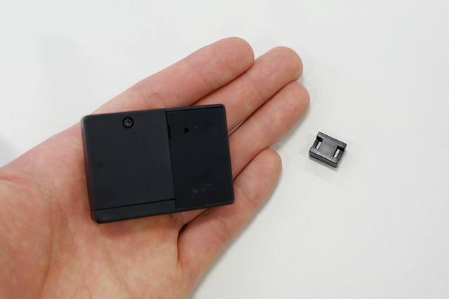 また、バッテリーもREC-1を固定したままでも交換できるよう、本体背面部から簡単に抜き差しできる外付け式を採用している。充電/マスストレージ兼用のMicro USB端子を装備し、充電時間は約120分で、駆動時間は最大約83分。映像出力はMicro HDMIで、底面には汎用的な三脚穴を装備する。外形寸法は31W×37H×115Dmm、質量は約101g。