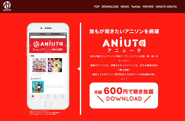 月額600円(税込)でアニメソングが聴き放題になる世界初のアニソン専門定額ストリーミング配信サービス「ANiUTa(アニュータ)」が本日3月24日よりサービス開始した(使用レポート記事はこちら)。