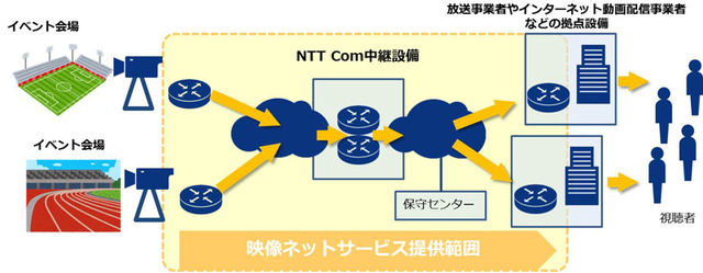 NTTコミュニケーションズ(NTT Com)は、スポーツやイベントなどのライブ映像を、撮影現場の会場から放送事業者や動画配信事業者などの拠点設備にリアルタイムで伝送する「映像ネットサービス」を本日より提供開始した。