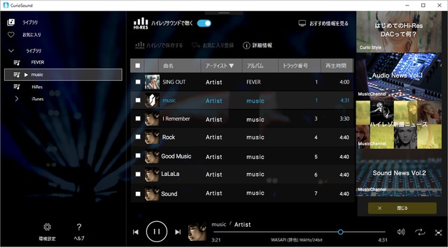 デジオン、年間1,480円で使えるWindows用ハイレゾ再生ソフト「CurioSound」