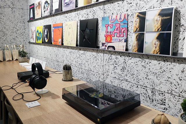 「レコード × ハイレゾ」では、最新の新譜から名盤まで様々なレコードを用意し、展示してジャケットデザインを楽しんだり、実際にソニーのレコードプレーヤー「PS-HX500」を使用して試聴することができる。