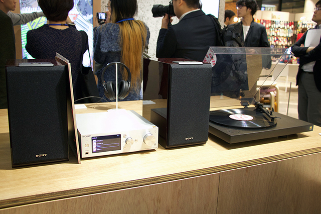 スピーカーでの試聴のほか、ヘッドホン「MDR-Z1R」やDAC内蔵ヘッドホンアンプ「TA-ZH1ES」を使っても楽しむことが可能。持参したアナログレコードを再生することもできる。