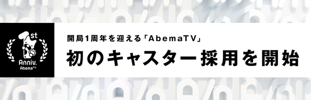 株式会社AbemaTVが運営する「AbemaTV(アベマティーヴィー)」は、開局1周年を迎えた本日4月11日(火)より、初のキャスター採用を開始した。