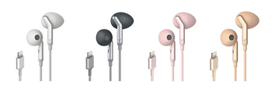 Lightning接続イヤホン「Qadapt LIGHTNING IN-EAR」は、アップル製品のLightning端子に接続するイヤホン。本体カラーはCloudy White、Stormy Black、Rose Pink、Elegant Nudeの4色。ドライバーユニットは11.8mm。4種類のイヤーピースも付属する。ケーブル長は1.1mで、4ボタンリモコンも備える。