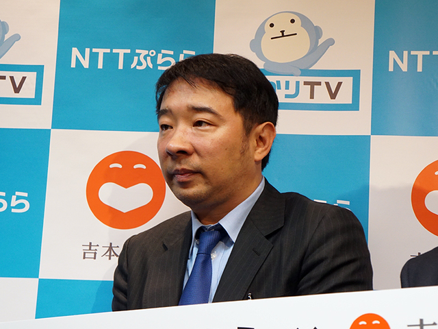 NTTぷらら代表取締役社長の板東浩二氏は、「吉本興業さんから、関西エリアにはディープで面白い、関西人以外にも喜んでもらえる番組コンテンツがあり、それを放置しておくのはもったいないのではないかという提案をもらった」と新サービス開発の背景を説明。「やってみないとなんとも言えない部分もあるが、最低でも今後3年間で30万会員は目指したい」と意気込みを語る。