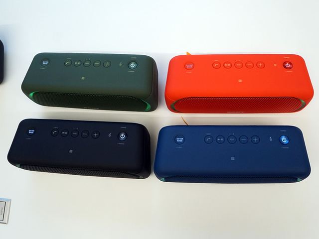 4機種ともIPX5相当の防水性能を備えたBluetoothスピーカー。Blutoothは4機種すべてがSBC/AAC対応で、XB10を除く3モデルはハイレゾ相当の情報量を伝送できるLDACコーデックにも対応している。年初にアメリカで開催されたCESで展示されていたモデル(関連ニュース)の国内市場投入が発表された格好。なおaptXには非対応。またLDAC対応だが、スピーカーユニット自体はハイレゾ領域の周波数帯域再生は行えない。