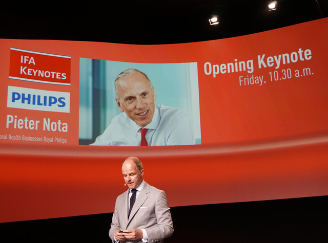 リスボンで実施されたプレイベント「IFAグローバル・プレスカンファレンス」の壇上にはメッセ・ベルリン社のCEOであるクリスチャン・ゲーケ氏が登壇。今年のIFAの見どころは「スタートアップ」と「先端テクノロジー」であると語った。