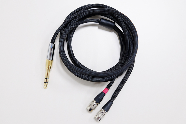 AEON FLOWに付属するケーブルはDUMMERケーブルで、ハンドメイドでひとつひとつ制作されている。ETHERシリーズに付属するDUMケーブルに比べて、柔らかな線材を採用しているため、わずかに細く、しなやかなものとなっている。6.3mmプラグにネジ式の3.5mmアダプタが付属するため、DAPやポータブルアンプのほか、据え置きアンプとの組み合わせも容易。またETHERシリーズとAEON FLOWは互換性があり、DUMケーブルの流用や、カスタムしたケーブルをそのまま使うことができる。