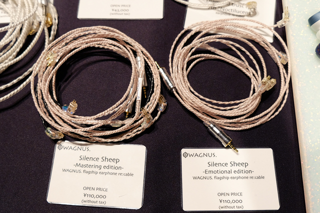 WAGNUS.ブースでは、2017年2月に開催された「ポタ研」(関連ニュース)に引き続き、リケーブル「Silence Sheep -Mastering edition-」および「Silence Sheep -Emotional edition-」を新製品として展示。
