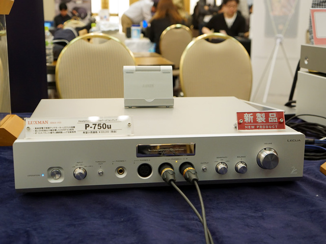 ラックスマンは、前日に発表したばかりのヘッドホンアンプ「P-750u」をさっそく展示。6月下旬の発売よりかなり先駆けて製品を体験できるようにしていた。
