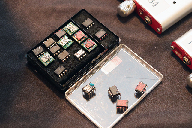 オペアンプの交換ができる点が特徴で、ブースでは試聴用に多数のオペアンプを用意している。