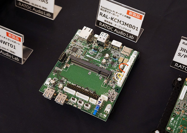さらに、Raspberry Piオーディオ機器組み込み用マザーボード「RAL-KCM3MB01」も出展。こちらも6月上旬の発売を見込み、価格はオープンだが25,000円前後での実売が予想される。