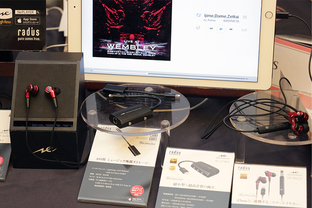 ラディウスは、先日発表されたドブルベシリーズの新イヤホン「HP-TWF00」を出展。発売は5月中旬を予定。価格はオープンで25,900円前後の実売を想定しているとのこと(関連ニュース)。