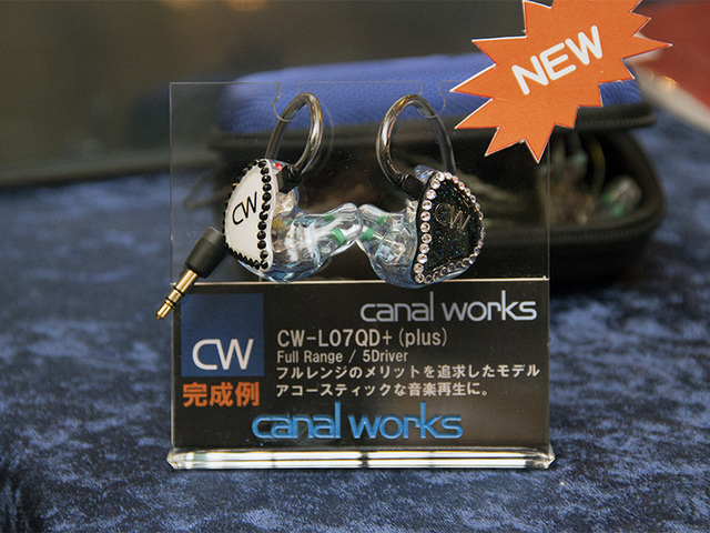 カナルワークスは、本日から発売開始した5基BAドライバー搭載のカスタムIEM「CW-L07QD+」を出展していた。「CW-L07QD+」は、4基をフルレンジで使用して並列駆動、残り1基を低域に割り当てている。この低域用のBAドライバーにより、フルレンジの良さを残しつつ、従来モデルよりワイドレンジな再生を実現したモデル。