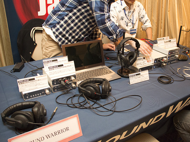 城下工業の自社ブランド“SOUND WARRIOR”のブースでは、SW Desktop-Audioシリーズやコンシューマー向けのバランス対応ヘッドホン「SW-HP20」などを展示。いずれも試聴可能となっている。
