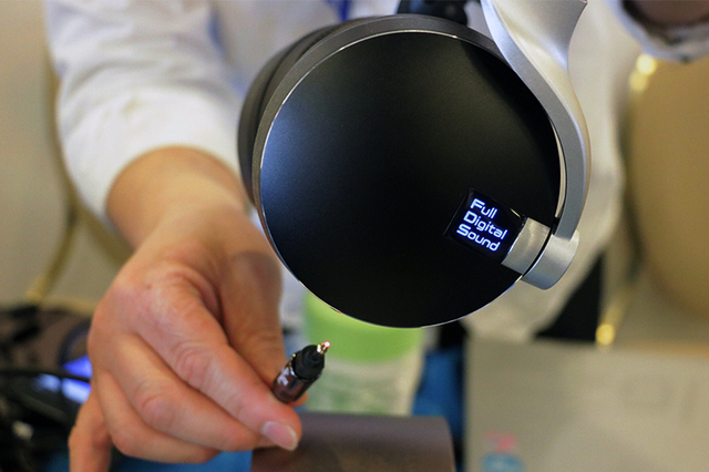 クラリオンは、平面振動板を採用したフルデジタルヘッドホン「ZH700FF」を展示。デジタル信号処理技術にTrigence Semiconductor社の「Dnote」を採用し、「音源を劣化させることなくドライバーをダイレクトに駆動することで、高音質かつ原音に忠実な再生を可能にする」としている。
