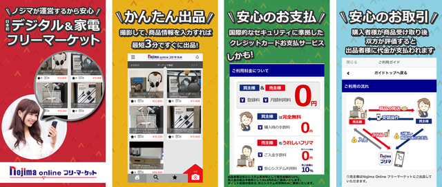 ノジマは、同社が企画・運営し、出品サポートや修理・アフターサービスも提供するCtoCサービスとして、日本初のデジタル家電専門のスマホ用アプリ「nojima フリーマーケット」をリリースした。