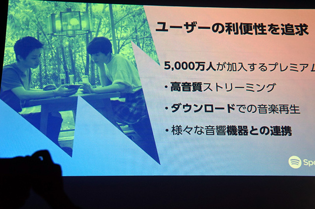 そのうえで玉木氏は、自身が運営に携わるSpotifyについて紹介。2008年にサービス開始し、現在では1億人以上のユーザー数がいて、うち約半数の5,000万人以上が有料ユーザーであることなどをあらためて語った。
