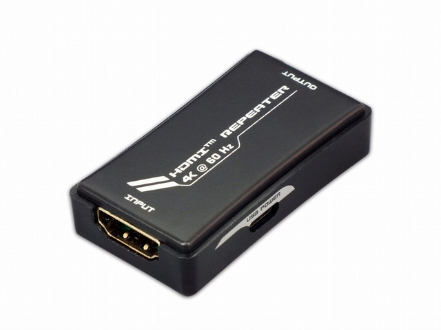 【SPEC】●対応ディスプレイ:HDMI入力端子を搭載したテレビ、パソコン用ディスプレイ、プロジェクター(HDR、3D、HDCP対応) ●対応機器:HDMI出力端子を搭載した映像機器、家庭用ゲーム機、パソコン ●最大延長距離:4K映像の場合(HDMI入力側10mまで HDMI出力側10mまで)、1080p映像の場合(HDMI入力側20mまで HDMI出力側20mまで) ●最大出力解像度:4096×2160(60Hz / 4:2:0 / 36bit) ●対応解像度:480i、480p、720p、1080i、1080p、4K30Hz、4K60Hz ●電源電圧:DC +5V (USBポートから供給) ●消費電流:Max.23mA ●外形寸法:約29W×9H×52Dmm(突起部含まず) ●質量:約16g(本体のみ)