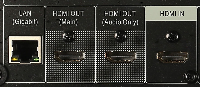 出力端子は7.1chアナログ×1系統、2chアナログ×1系統、XLR端子×1系統、光デジタル×1、同軸デジタル×1、HDMI×2(うち1つは音声専用)。入力端子は光デジタル×1、同軸デジタル×1、HDMI×1。その他、LAN端子×1とUSB3.0×2、USB B×1を備える。