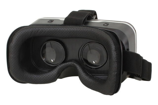 前方にスマホを収納して使うタイプのVRゴーグル。4〜6インチまでのモデルに対応する。安価ながら周囲の光を遮断するためのクッション等を用意。メガネをかけたままでも使用することができる。ヘッドバンドの長さ調整や、レンズの瞳孔間距離と焦点距離調整も可能だ。