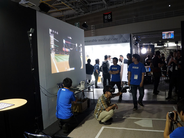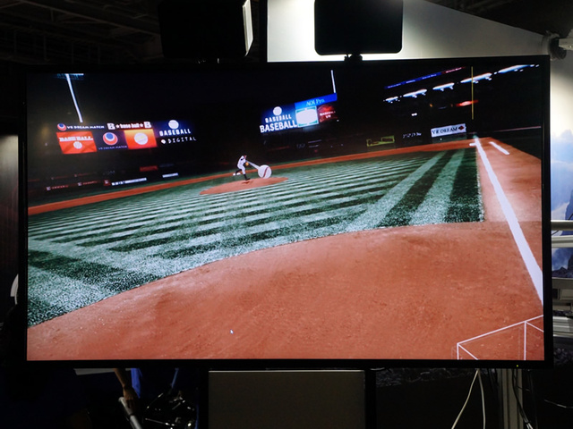AOI Proは、ルームランナーを組み合わせ、女の子に手を引かれて雄大な自然を歩く「WONDERFUL WORLD VR Private Tour」や、165キロのストレートをバッターとして打ったり、キャッチャーになって捕球できるかを体験する「VR Dream Match - Baseball」などをデモ。来場者から大きな注目を集めていた。