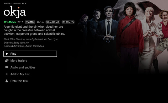 Netflixは、日本を含む全世界でドルビーアトモス音声での作品配信を開始した。第一弾作品はポン・ジュノ監督作品の「オクジャ」で、7月以降に「BLAME!」などもドルビーアトモスで配信開始される。