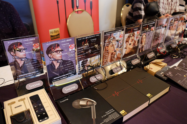 1moreのブースでは、「E1010」「E1008」「E1001」といった従来モデルにくわえ、届いたばかりという新製品のLightning接続対応ノイズキャンセリングイヤホン「E1004」が参考出展された。再生周波数は20Hz〜20kHzで、最大入力は5mW。価格や発売時期などの詳細はまだ未定とのこと。