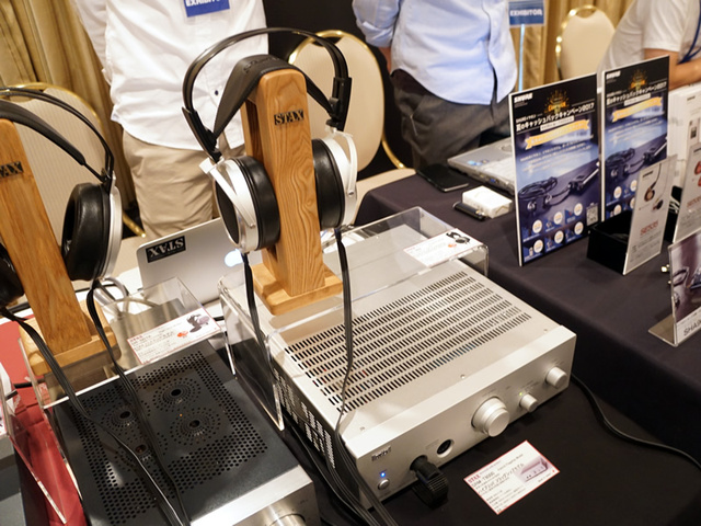 ブースでも特に大きなスペースを占めていたのがSTAXの展示。新モデルである静電型ヘッドホン用最上位アンプ「SRM-T8000」を中心に、各モデルを試聴可能だった。