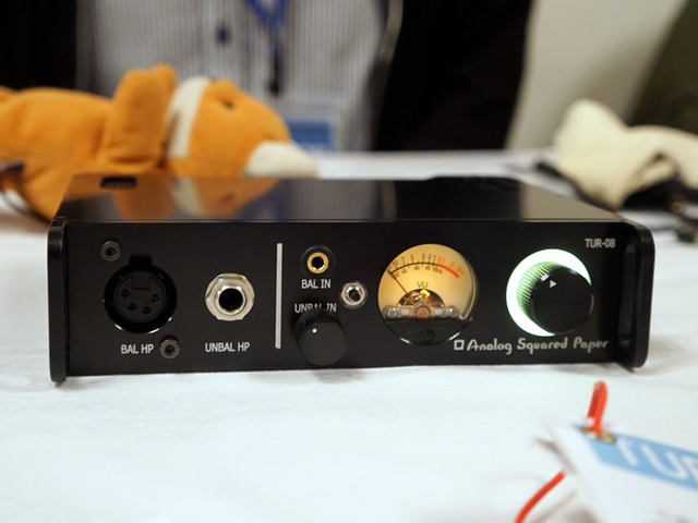 ANALOG SQUARED PAPERは、8月に25万円程度での発売を予定する新ポータブルヘッドホンアンプ「TUR-08」を参考展示。