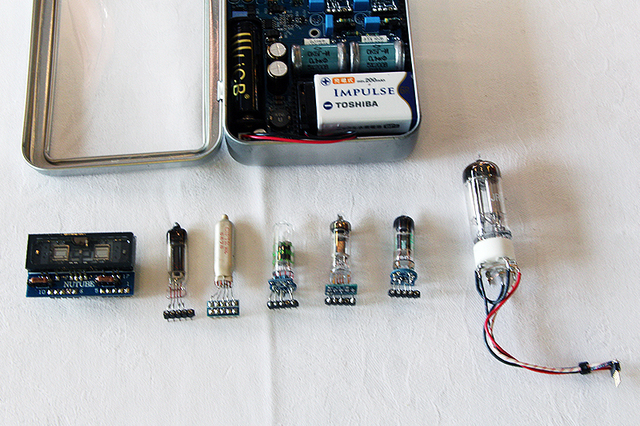 Sub minitsのブースでは、真空管ポータブルヘッドホンアンプ製品を展示。“お弁当箱ポータブルアンプ”「オールドタイム」では、リチウムイオン電池3.7Vをヒーター電源に使用し、低電圧動作させることで6.3V管の使用も可能になったとのこと。また、各種真空管を選択できる「DH-PA02」や単三電池1本で駆動する小型モデル「DH-PA03」なども試聴展示されていた。