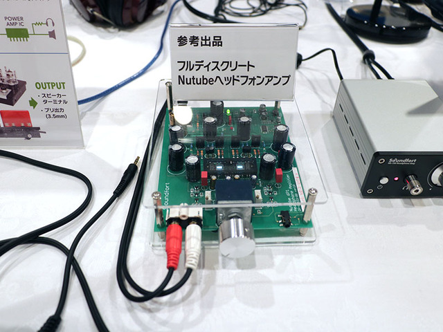 Soundfortは、コルグ製の真空管「Nutube」を搭載したフルディスクリート構成のヘッドホンアンプを参考出展していた。現在開発中の製品で、サウンドから搭載するコネクター、サイズ感などについて、来場者からの意見を参考に制作を進めていくという。