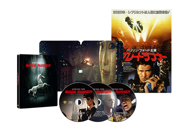 新たに日本語吹替音声を追加収録したBDを含む3枚組。「ワークプリントを含む『ブレードランナー』全5バージョンを堪能できる究極の3枚組」とアピールされている。原作者 フィリップ・K・ディック ブレードランナー インタビュー集の日本語訳ミニポスター付き。ミニポスターの裏面デザインには1982年日本劇場公開時のアートを採用している。