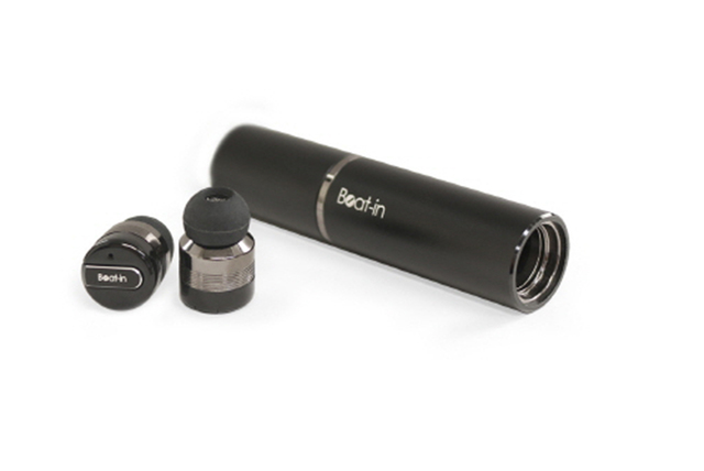 「Beat-in」は片耳あたりの外形寸法φ13.9×21mm、質量約4.4gという小型/軽量ハウジングを特徴とする、左右ユニット間のケーブルが無い、完全ワイヤレスのBluetoothイヤホン。ハウジングには通話用のマイクと、電話の受話・リダイヤル操作を行うボタンが搭載される。