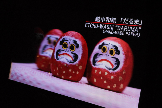 同時に解像度を両立している点も特筆したい。今回の17型ディスプレイではおおよそHD程度の解像度があるという。「サイネージや美術工芸品のアーカイブ、教育用途などへの応用を考えている」という解説も納得できる。表示された映像を動画に撮影したので、その雰囲気をご体感いただきたい。
