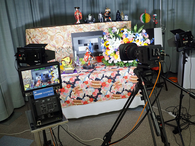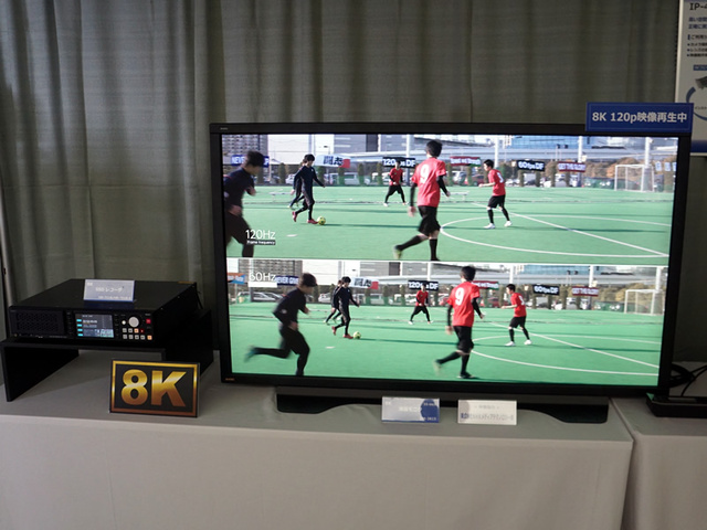 様々な製品が展示される同イベントだが、やはり中心となるのは8K関連。単板式8Kカメラヘッド「AH-4801-G」で撮影した8K 映像を、8K カメラコントロールユニット「AC-4813」で8K 4:2:2信号に変換し出力するデモでは、120pのフルスペック8Kでの撮影を行えることをアピール。ハイフレームレート化によって、超高精細なだけでなく動画ボケの少ない8K映像を実現できることを紹介している。