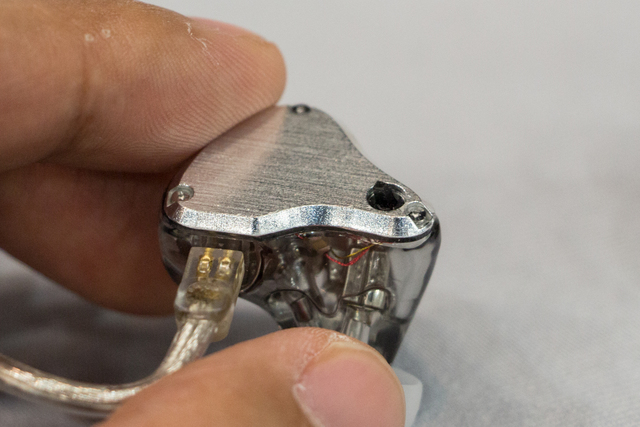 雙(Twins)は、BAドライバーを7基搭載。超高域用×2、高域用×2、中域用×2、低域用×1という構成をとっている。フェースプレートにスイッチを搭載しているが、これはクロスオーバー切り替えと思われるとのこと。いずれのプロトタイプも昨日届いたばかりのもので、詳細については追って明らかになるという。