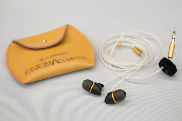7月17日に発売されるLotooとENIGMA acousticsのコラボイヤホン「Dharma D200」(関連ニュース)も出展。会場では付属ケースも披露されていた。