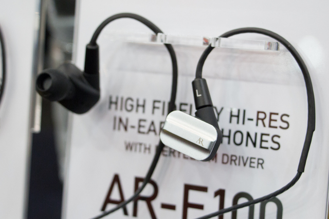 「AR-E100」はベリリウム振動板による10mmダイナミックドライバーを1基搭載したイヤホン。こちらもケーブルは着脱式で、2pin端子を採用。インピーダンスは32Ω、周波数特性は20Hz〜40kHzとなる。