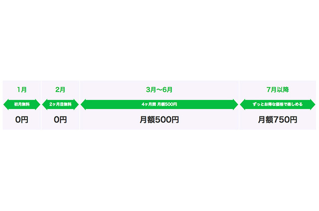 LINEモバイル回線契約時に「LINE MUSICオプション」を同時申し込みすると、月額750円(税抜)のオプション料金が最大2ヶ月無料+4ヶ月間500円(税抜)になる同時申込特典も用意している。