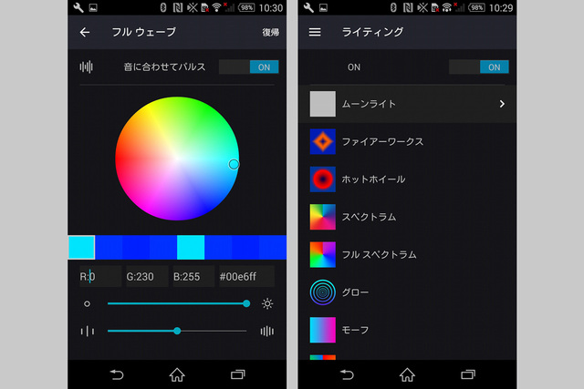 スマホアプリで発光パターンの編集が可能