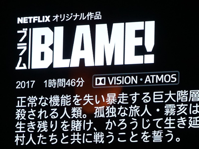 また、ドルビービジョンとHDR10との違いについては「ドルビービジョンは12bit、HDR10は10bitと2bitの差があるが、(原理的に絶対にノイズが入る)実写映像では実はそこまで2bitの差は現れない。しかし、CGのように元々のノイズがまったくないコンテンツでこの2bitの差が大きく効いてくる」とコメント。『BLAME!』がドルビービジョンを採用するメリットの大きい作品であることを説明した。