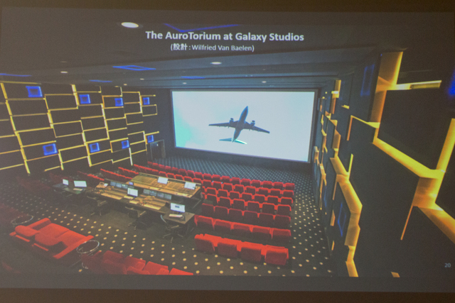 プレゼンテーションでは、Auro社がベルギーに保有しているGalaxy Studioについても詳しく触れられた。本スタジオはAuro社、ひいてはAuro-3Dの本拠地であり、イマーシブオーディオの録音・作成を念頭にして用意された、Baelen氏の言葉を借りれば「世界初の真にインタラクティブなスタジオ設備」である。