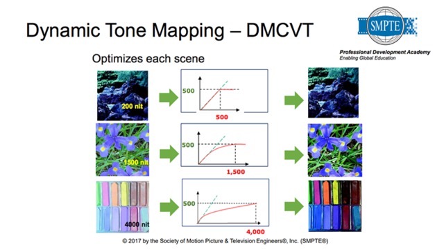 この問題を解決するのが、フレームごと、あるいはシーンごとにMax CLLデータをメタ情報として記録する、ダイナミックメタデータ(動的メタデータ)という考え方だ。ドルビービジョンは当初からダイナミックメタデータを特徴としており、シーン、あるいはフレームごとに輝度レベルが調整される。これによって、どのような映像でも制作者の意図通りに映像を再現できるとアピールしている。