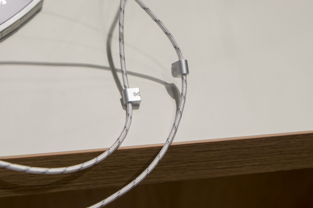 Uplift Wirelessは、従来あるワイヤードモデルの「Uplift 2」(日本未導入)をベースにしたBluetooth対応イヤホン。注目なのはユニークな装着方法だ。写真でもお分かりの通り、ケーブルが他社モデルと比較して長い。これはケーブル上にある磁石を使い、ケーブルを固定して使うからだ。装着してみると、ネックバンド式のようなズレが起きるのを防ぐ効果があることを実感した。実際にブース説明員のデモでは、磁石でケーブル位置を固定して使用していた。