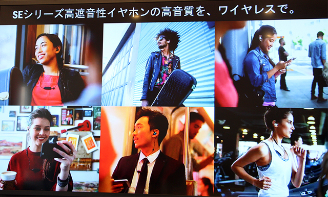 今回発表されたBluetoothイヤホン「SE215 Wireless」「SE112 Wireless」およびリケーブル「RMCE-BT1」の製品コンセプトについて、昆氏は「従来の高遮音性イヤホン“SEシリーズ”が持つ高い音質やデザインはそのままに、ワイヤレスに楽しんでもらいたい」と説明。