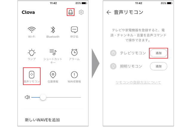 LINEは9月20日より、クラウドAIプラットフォーム「Clova」を搭載するスマートスピーカー「WAVE」に、家電製品を声だけで操作できる音声リモコン機能を追加した。