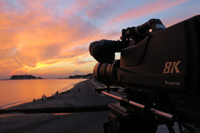 使用されたカメラはIkegamiの8Kハンディカメラ「SHK-810」、レンズはFUJINON「SL3×12」。車内に持ち込むことも考えて機材が選定されたという。撮影は60Pで行われている。カメラはHLG/BT.2020設定で出力。撮影電場ではソニーの30インチ4K有機ELもニアー「BVM-X300」とHDR対応波形モニターを用意し、カラーグレーディングを想定したHLG方式の輝度管理が行われたとのこと。