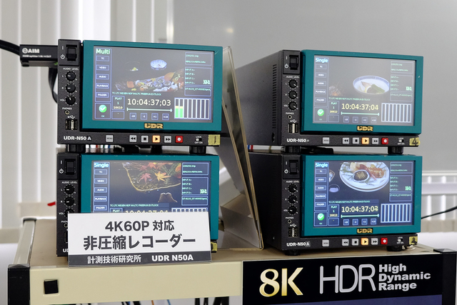 ほか、計測技術研究所製の4K/60P非圧縮レコーダー「UDR-N50A」を4台使用し、接続にはエイム電子のHDMI分配器およびHDMIケーブルを採用。Spin Digital製メディアプレーヤーを用いて、すべて非圧縮HDR/BT.2100/60pでの再生が行われた。