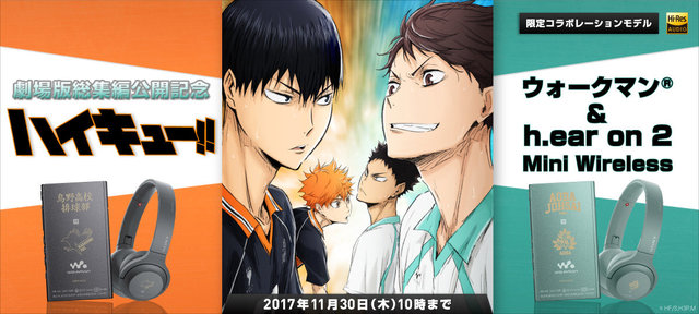ソニーマーケティングは、劇場版総集編『ハイキュー!! 才能とセンス』とコラボレーションしたハイレゾ対応ウォークマン、ヘッドホン「劇場版総集編公開記念ハイキュー!!」コラボレーションモデルを、本日9月25日(月)10時から11月30日(木)10時までの期間限定および数量限定で販売する。